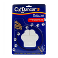 The Cat Dancer Deluxe is our Original Cat Dancer handheld toy packaged with a plastic paw that is to be attached to a wall to hold the toy for cats to play alone. It is attached to the wall using Command Strips which we include in the package. It takes just 30 seconds to install and it’s literally a snap to attach the toy for the cats to play.