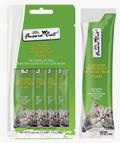 Water Sufficient for Processing, Chicken, Duck, Goat Milk, Sunflower Seed Oil, Tapioca Starch, Tricalcium Phosphate, Tuna Oil, Xanthan Gum, Calcium Carbonate, Choline Chloride, Taurine, Zinc Sulfate, Guar Gum, Fructooligosaccharide, Vitamin C Supplement, Vitamin E Supplement, Ferrous Sulfate, Thiamine Mononitrate, Nicotinic Acid, Calcium Pantothenate, Vitamin A Supplement, Manganese Sulfate, Copper Sulfate, Riboflavin Supplement, Pyridoxine Hydrochloride, Folic Acid, Potassium Iodide, Vitamin D3 Supplement, Biotin, Vitamin B12 Supplement.