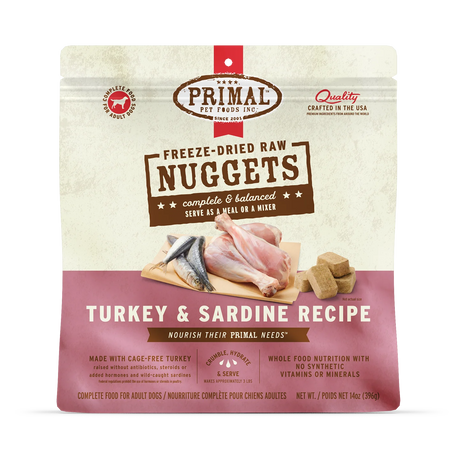 Primal Freeze-Dried Raw Nuggets Dog Food Turkey & Sardine Recipe