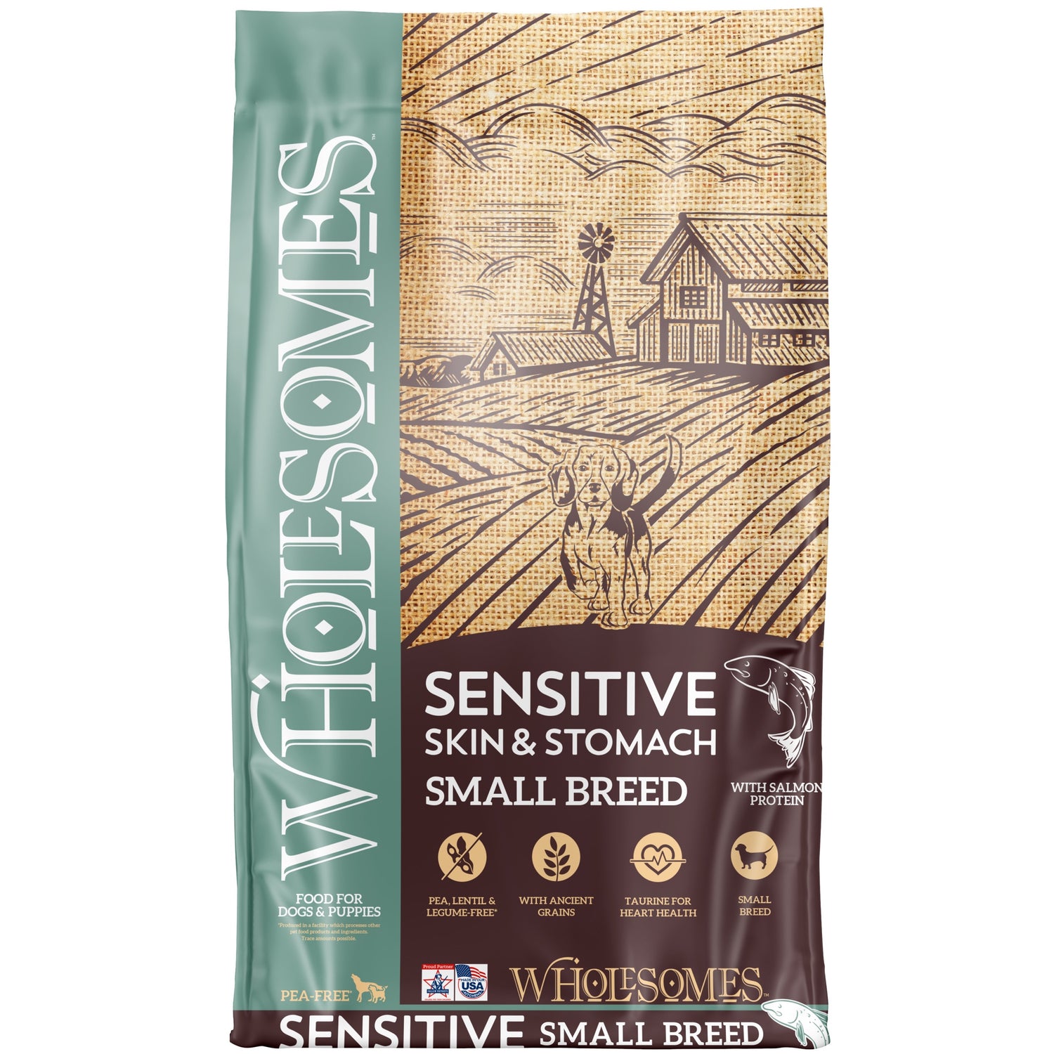 Looking for a small breed dog food for sensitivities? We’ve got you covered! Wholesomes Sensitive Skin & Stomach Small Breed was formulated with care to help your sensitive small breed dog stay on a positive course of health throughout all stages of life. Packed with easily digestible proteins and quality sources of fiber, this salmon dog food for sensitive stomach and skin will support any puppy or adult dog’s dietary needs.