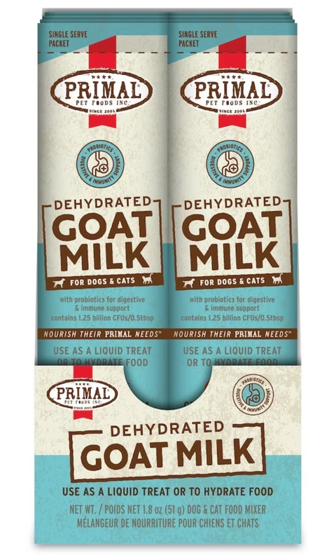 PRIMAL $1.99Unit price /Sold out• Dehydrated Goal Milk for Cats and Dogs• With probiotics for digestive and immune support• Use as liquid treat or to hydrate food$1.99Unit price /Sold out