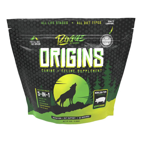 ORIGINS SUPPLEMENT Rogue Origins 5-in-1 Dog Supplement, 3 Protein options, Powdered Food Topper for Active Dogs $35.99Prix unitaire /ÉpuiséADVANCED NUTRITION: Our formula consists of natural whole wild caught fish, fish oil, omega 3, 5, 6, 7, 9, prebiotics, probiotics, postbiotics, and vitamin A, D and E. Fill in the nutritional gaps left by typical dog food diets and picky eaters! GUT HEALTH: This yummy dog topper is packed...$35.99Prix unitaire /Épuisé