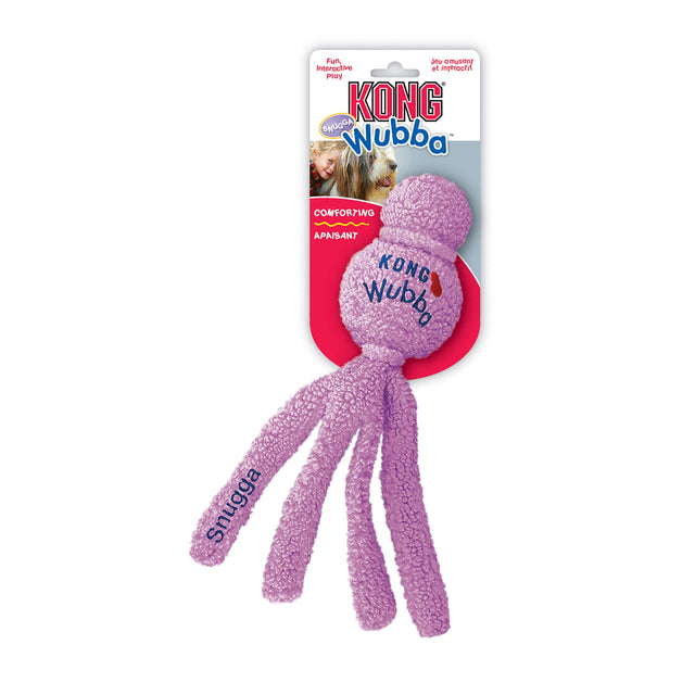 The KONG Snugga Wubba is an interactive toss and comfort toy. There are no squeakers inside for quiet, gentle indoor play. The soft, thick fleece fabric cover is comforting to snuggle with and is great for indoor or outdoor play.