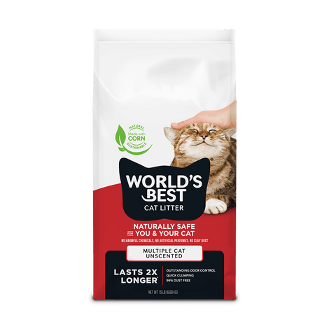 WORLD'S BEST World's Best Cat Litter Multiple Cat Unscented $24.99$20.99Unit price /Sold outMore cats require more odor control. Our Multiple Cat formula is a quick-clumping litter with added natural plant ingredients for outstanding odor control. Because itās made from whole-kernel corn, itās naturally safe for you and your cat, with no harmful chemicals, no artificial perfumes, and no clay dust. And for...$24.99$20.99Unit price /Sold out