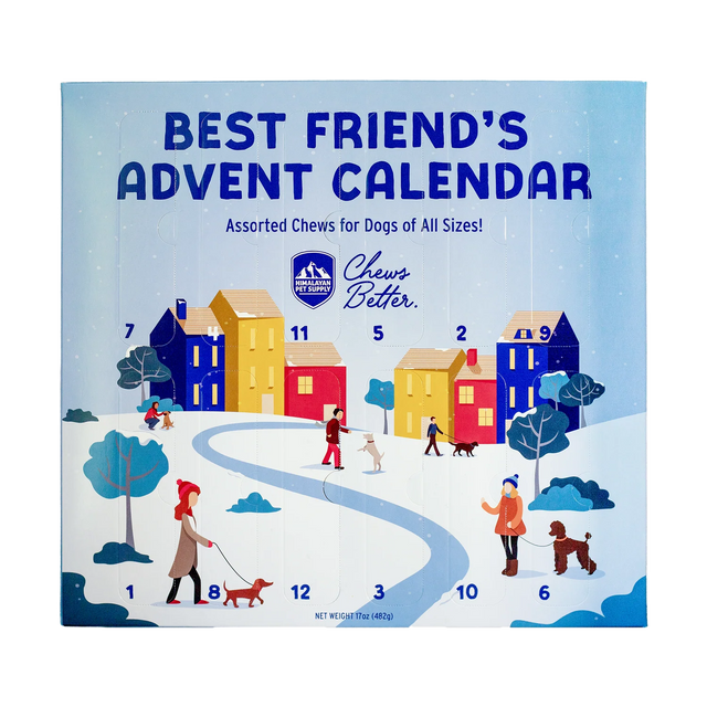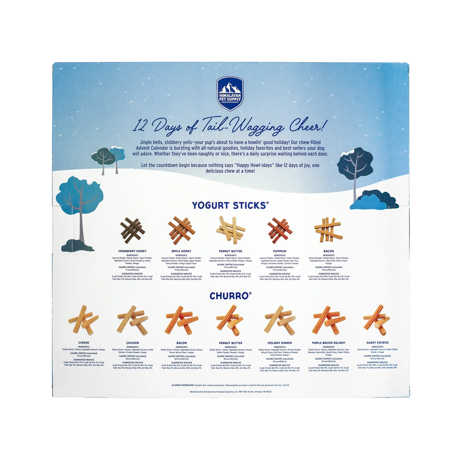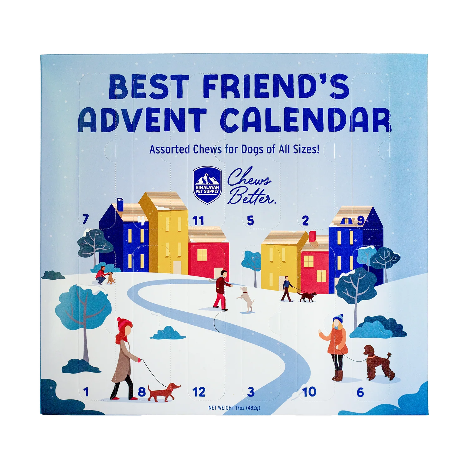 - Give your pup 12 holiday dog chews in this classic Advent Calendar format. Peek inside each window to find a tasty treat for your best friend
