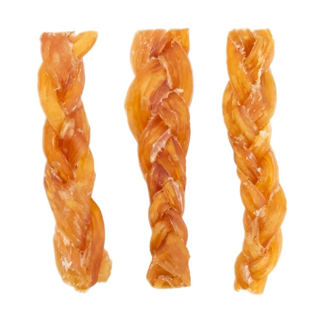Made of our 100% Premium Quality Beef Cervical, this quality treat is rich in protein and easy to digest. Our Braided Backstrap Stick is sourced from free-range beef with NO additives, NO hormones, and NO antibiotics. This treat is extra dense and is perfect for the power chewers.
